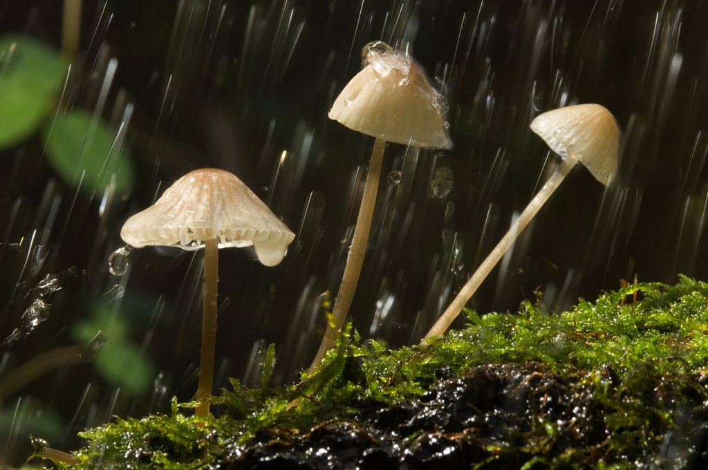 Fairy Bonnet toadstools (Coprinus Disseminatus) weathering a storm in a Norfolk churchyard. Fungi play a vital role in the renewal of nature during the month of November. Attaching themselves to plants, especially trees they form a symbiotic relationship with their host, simultaneously feeding on their nutrients and recycling fallen leaves to assist in the growth of roots. Mankind has utilised their properties in brewing and baking for thousands of years but more recently has discovered their usefulness in preventing the rejection of human organs during transplants.
