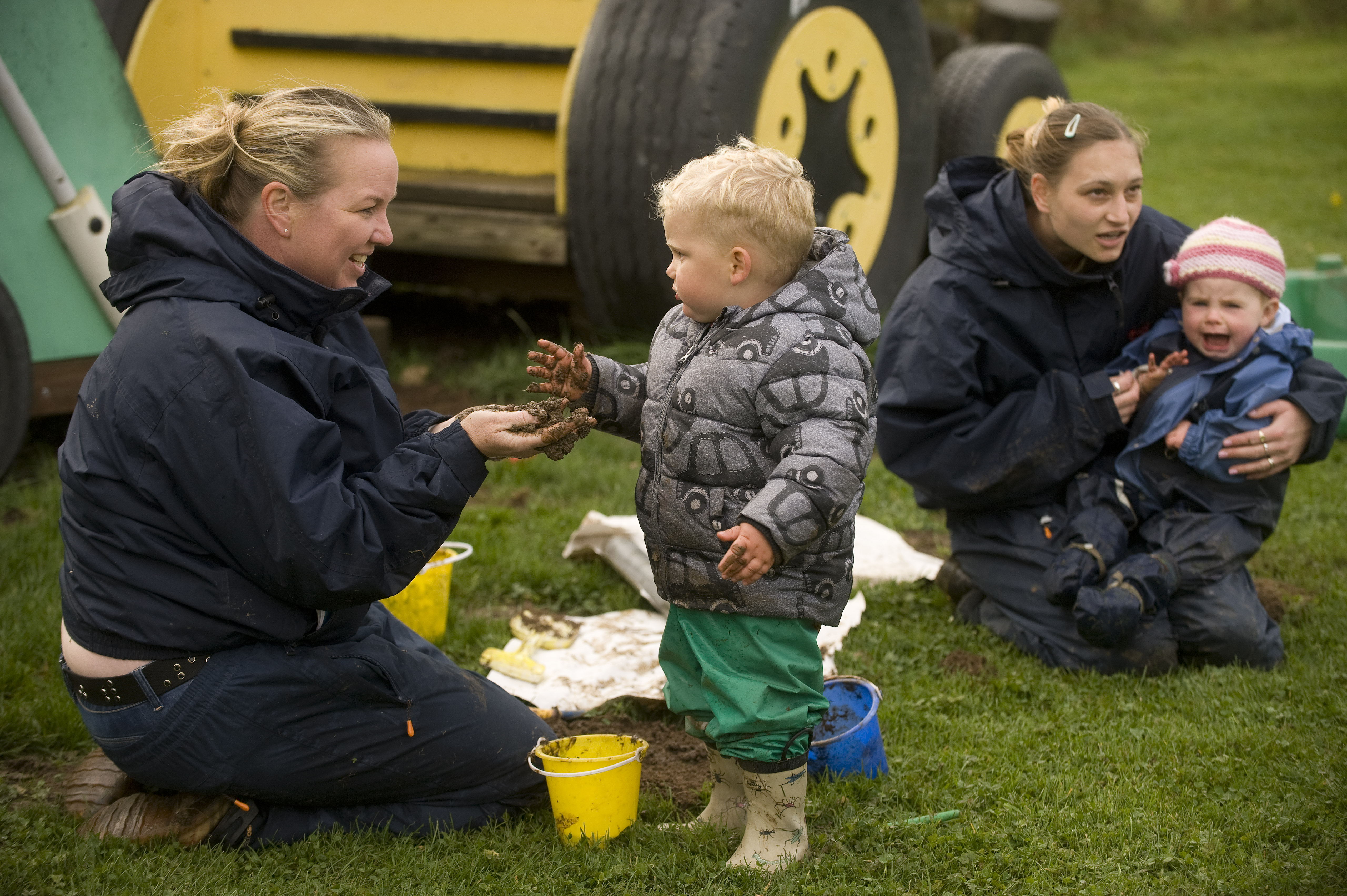 ?Si Barber/07739 472 922 Children at a private nursery playing outside with their carers.