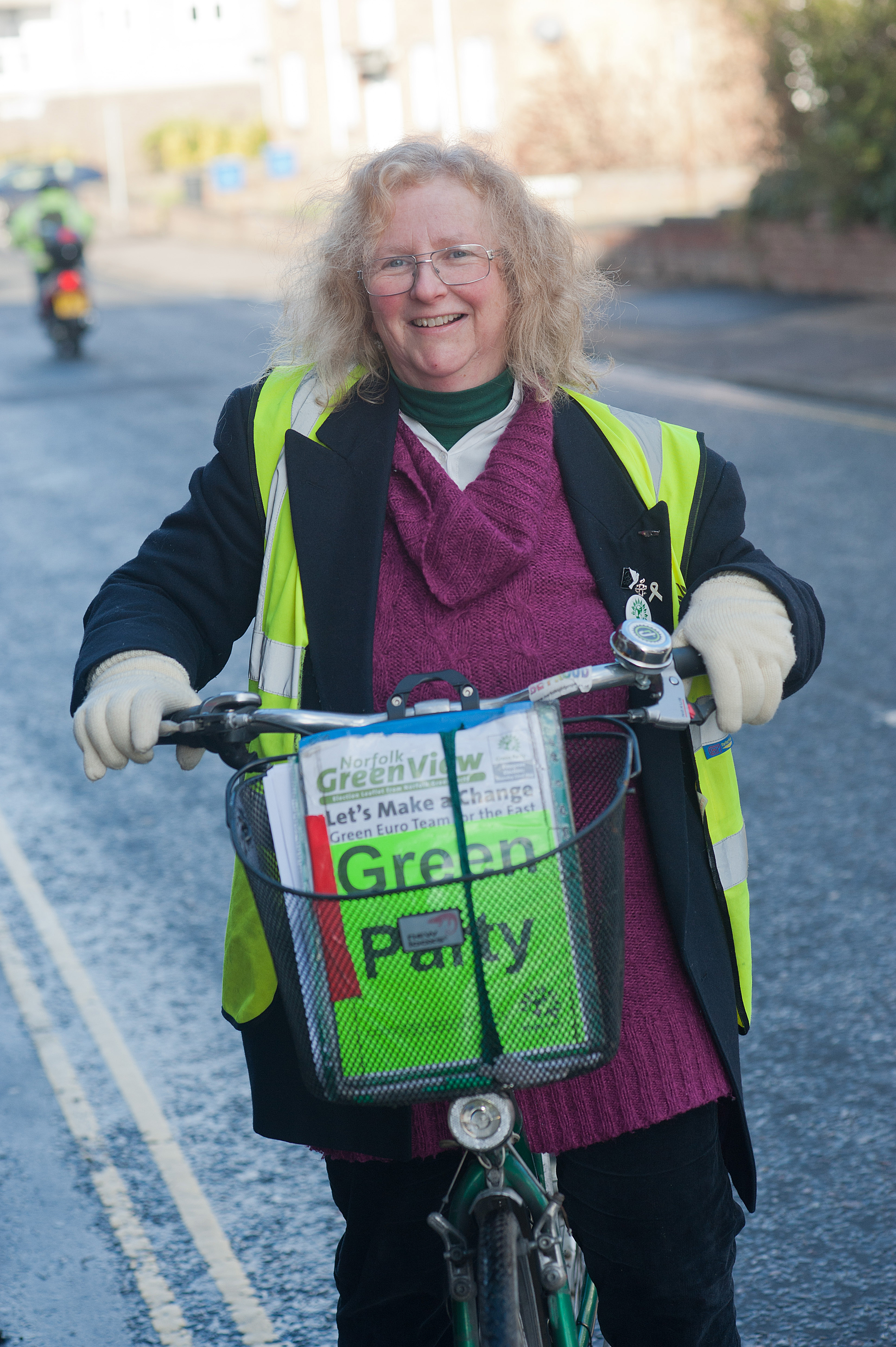 Lesley Grahame, Green Party candidate for Norwich South canvassing in the city.