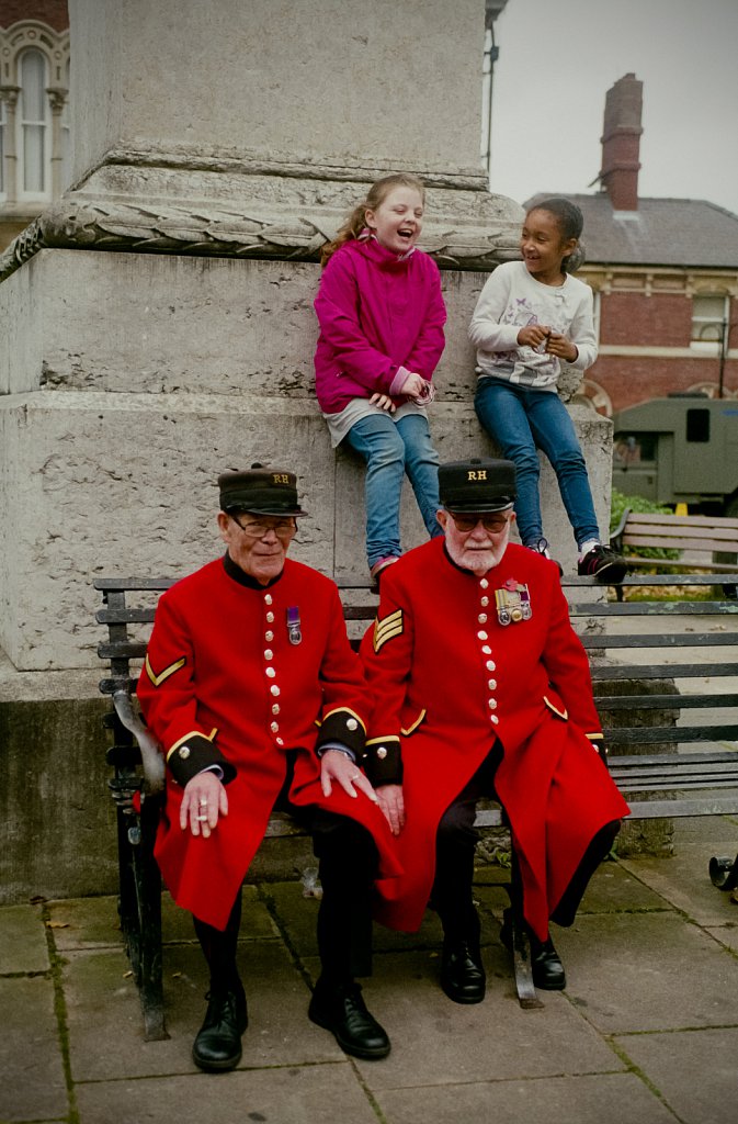 Chelsea pensioners and civic dignitaries by Grantham war memorial 2014.