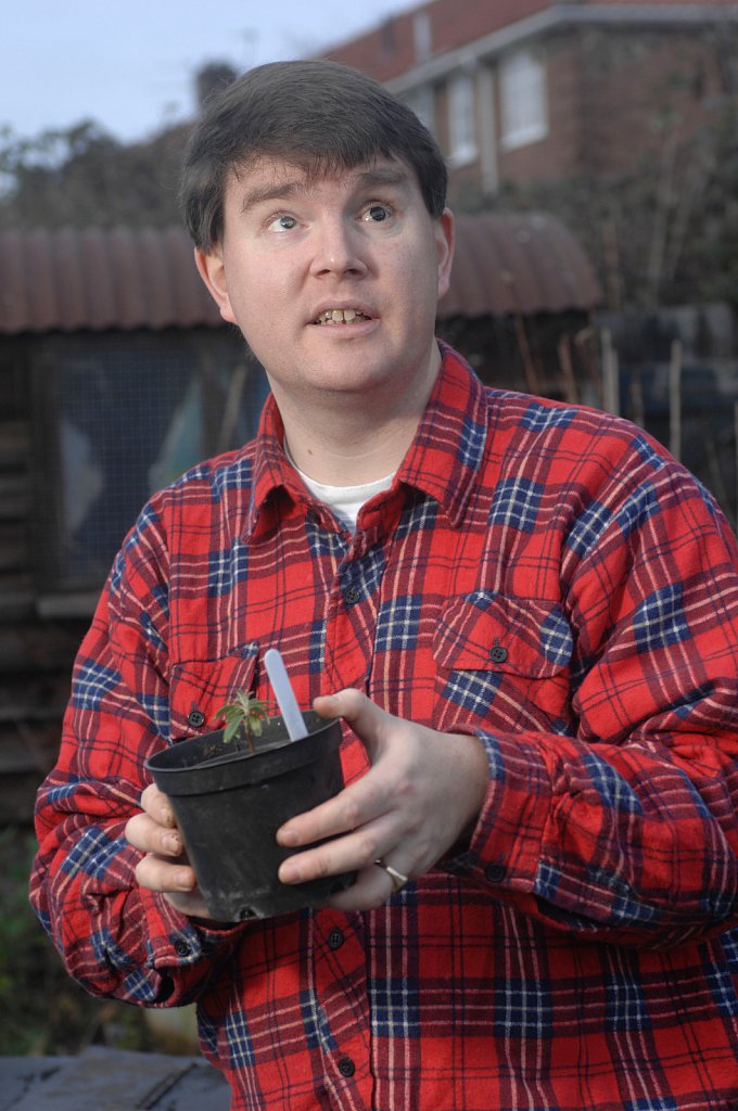 Mark Smith, blind gardener at work on his allotment in Norwich, Norfolk,UK.