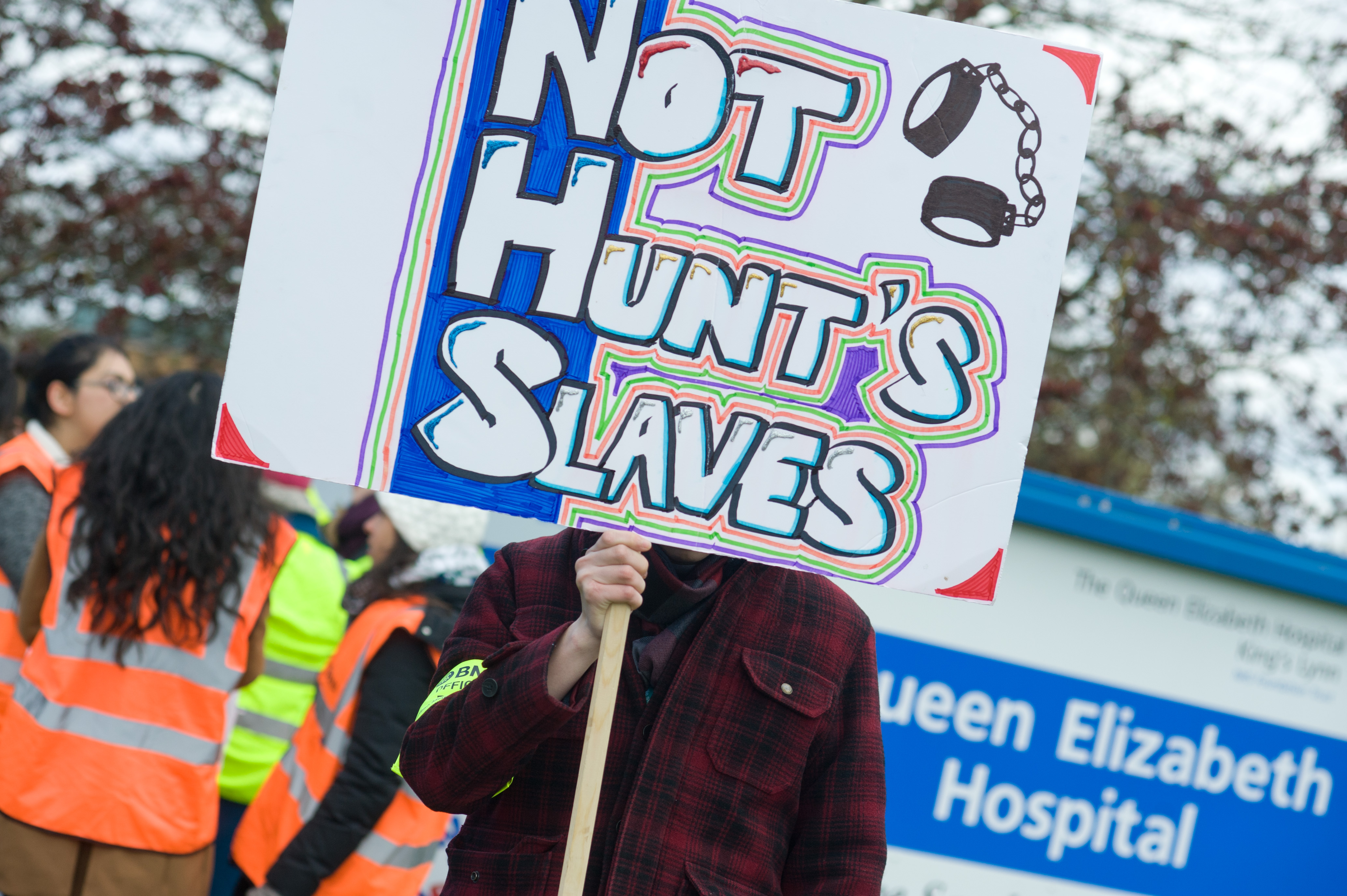 Doctor's protesting outside the Queen Elizabeth Hospital, Kings Lynn, Norfolk on the first day of their first ever strike, 26th April 2016.
