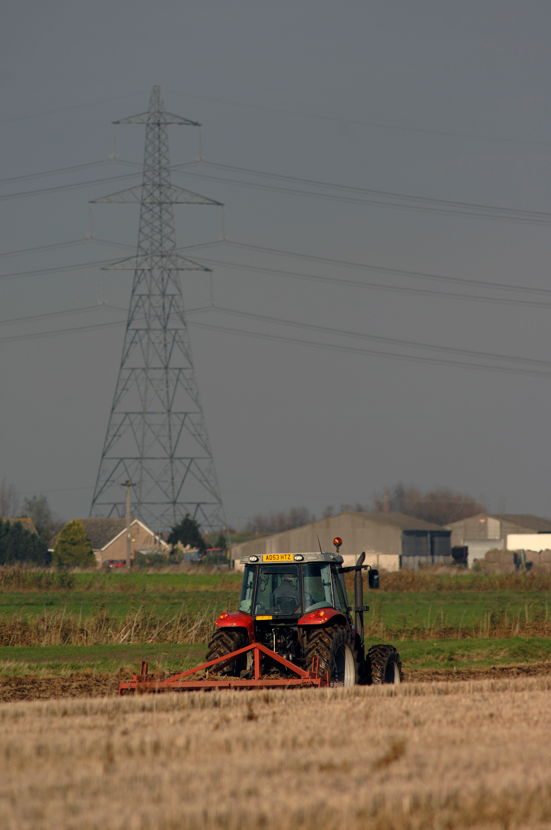 A Massey Ferguson 6455 ploughing up a field prior to the sowing of winter wheat.