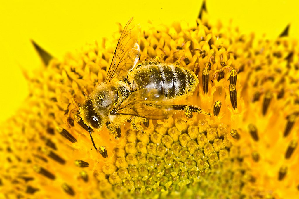 Downham Market, Norfolk, UK, 31.08.17. No Bank Holiday knees up for the bees as they collect the last of the Summer pollen on sunflowers which they will turn into honey back at their hive to sustain them over the winter