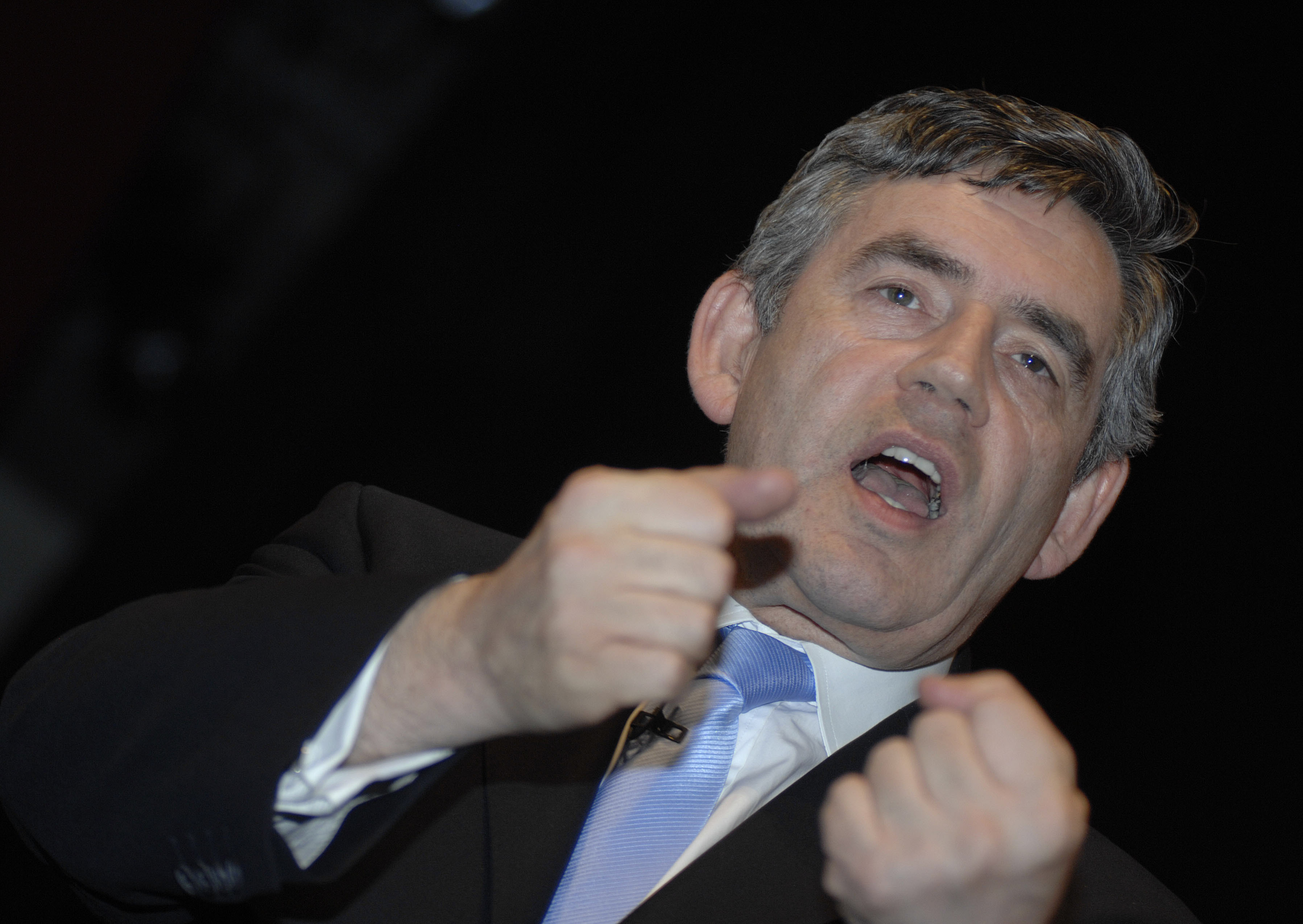 Former Labour Prime MInister Gordon Brown speaking in Leicester