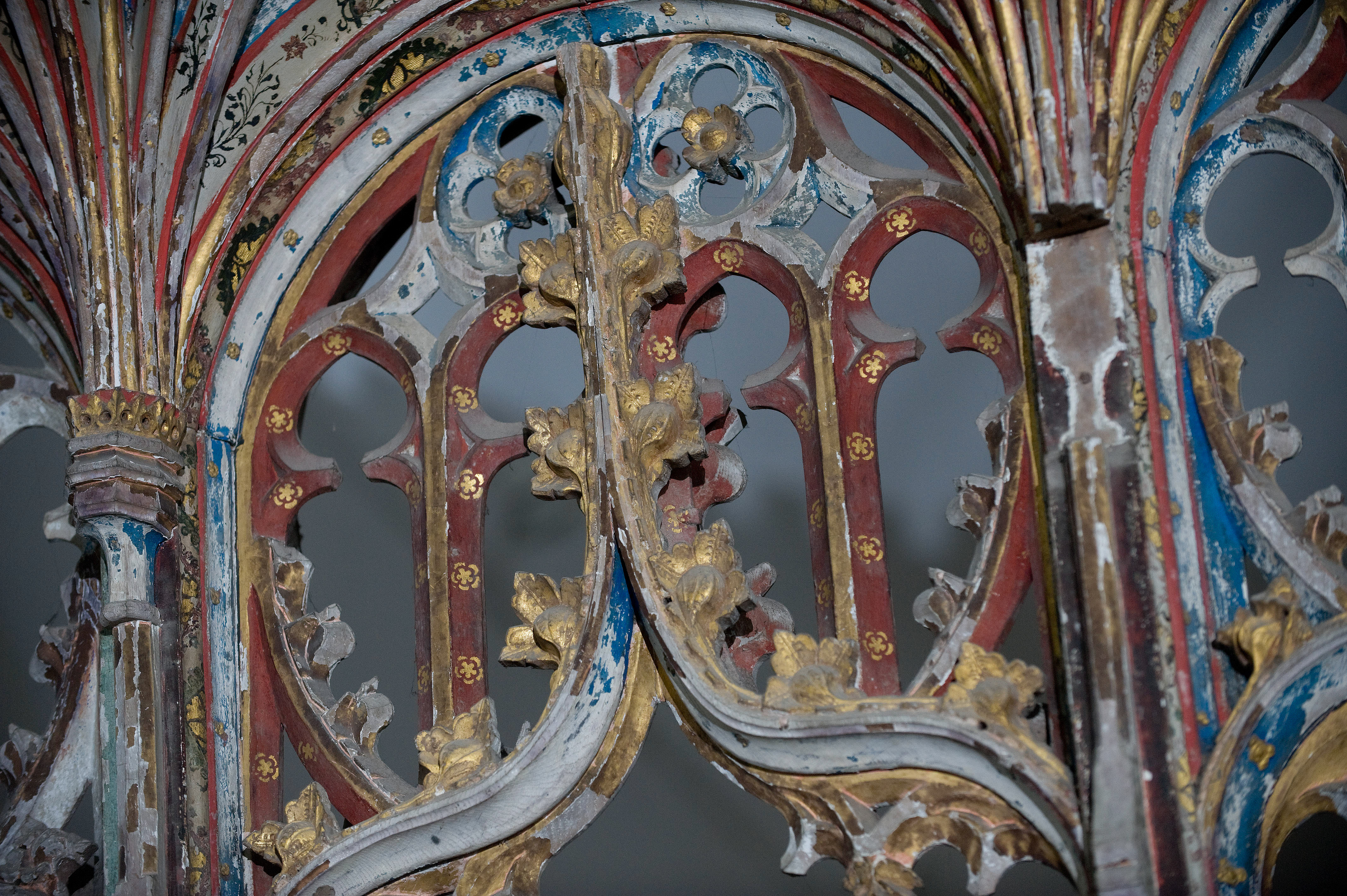 The rood screen at the church of St Andrew, Bramfield, Suffolk.