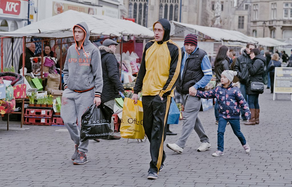Migrant workers from Eastern Europe shopping in Boston town centre on a Saturday afternoon.They’ve adopted the ‘gopnik’ look, popu…