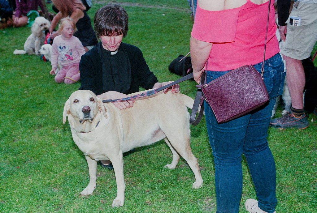 Reverend Eleanor Whalley vicar of Soham judging the dog show at Soham Carnival, Cambridgeshire,2019