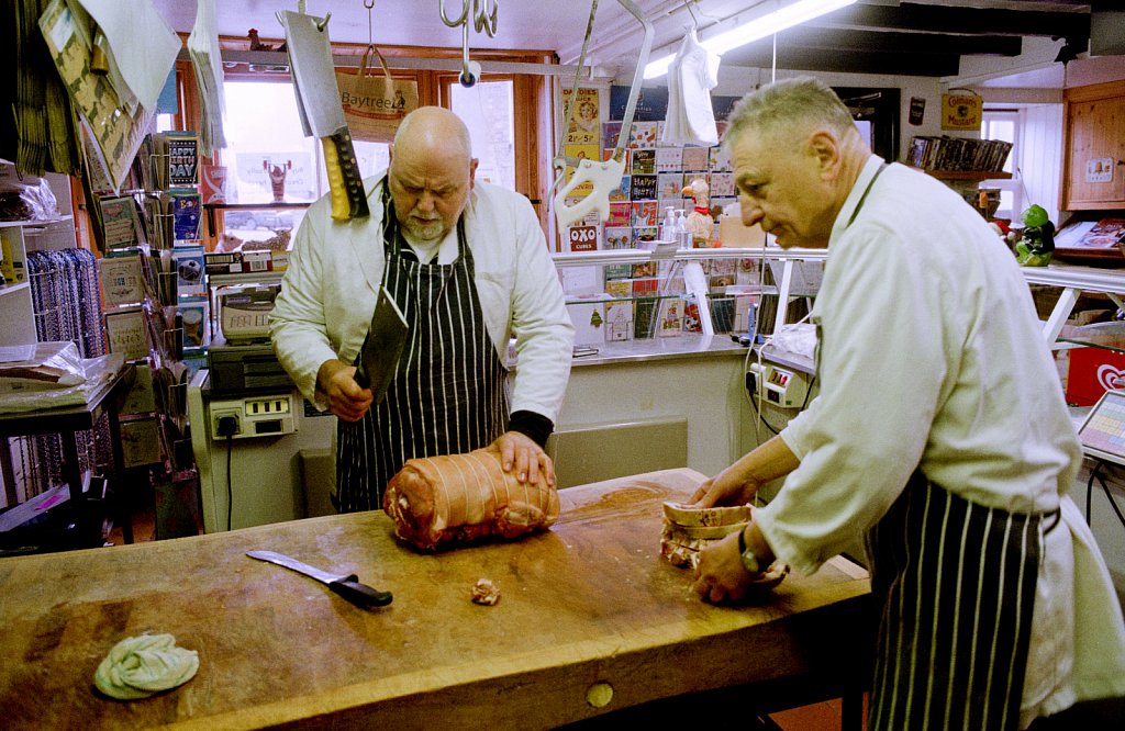 Ali Dent OBE, and assistant Fred of Dent's Butchers Hilgay, Norfolk. The shop has served the village since 1900. “I was born here…