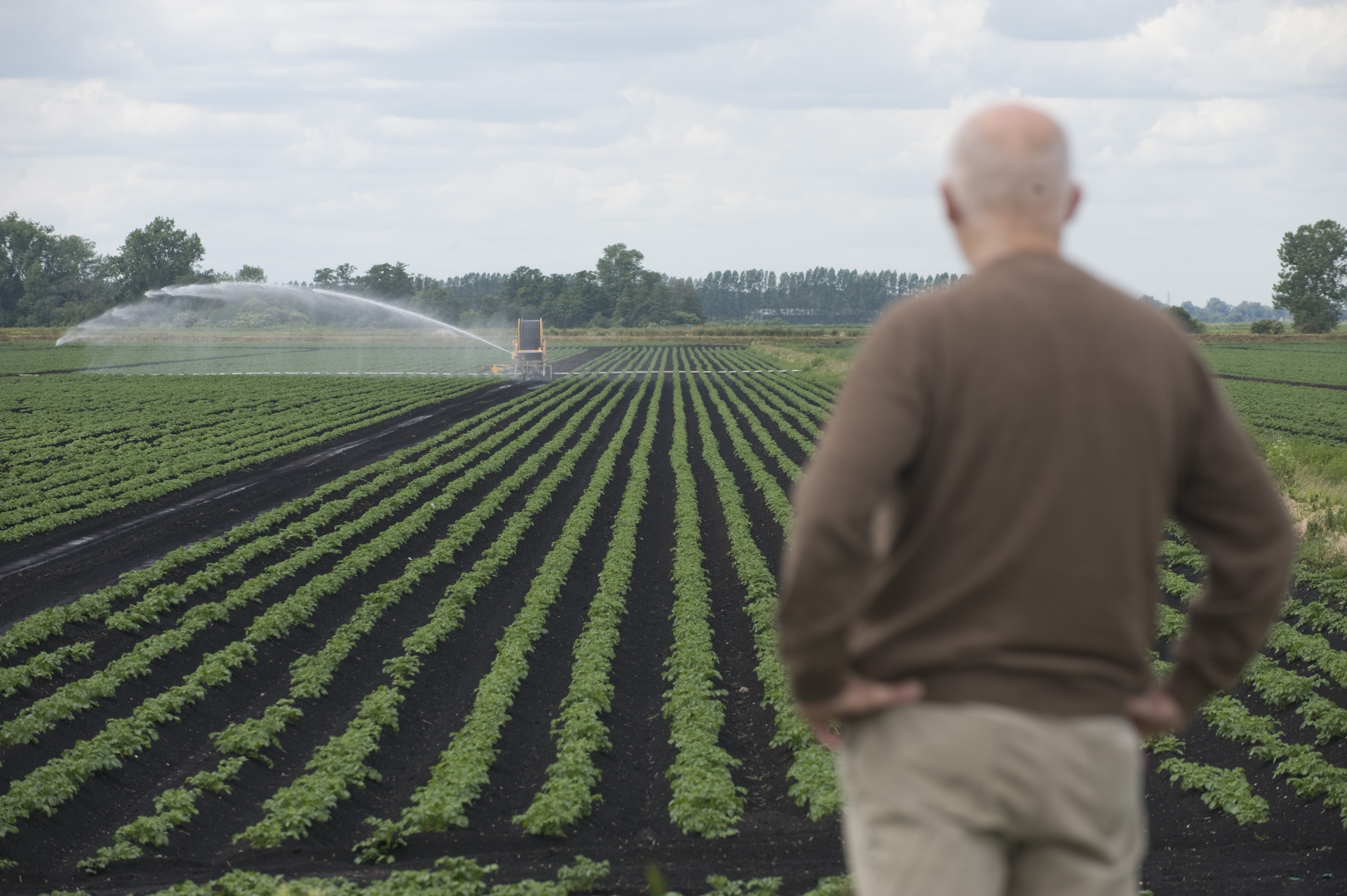 ? Si Barber 07739 472 922 A farmer in Cambridgeshire watching over the irrigation of a field of potatoes with river water. Due to the abesence of rain, the county is now officially under a drought, having experienced the driest spring since records began.10th June 2011