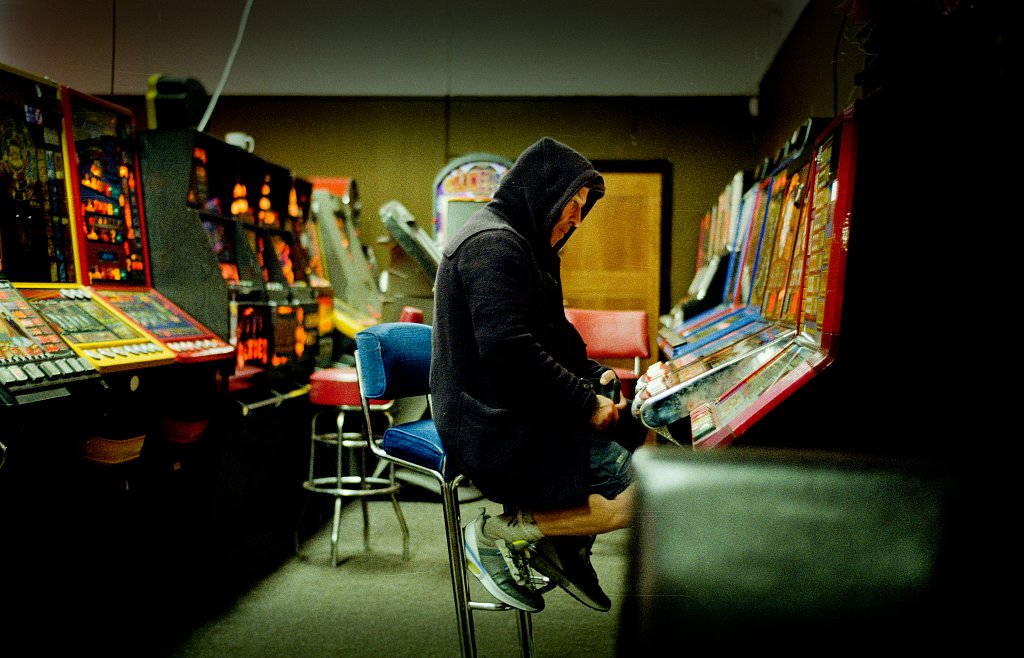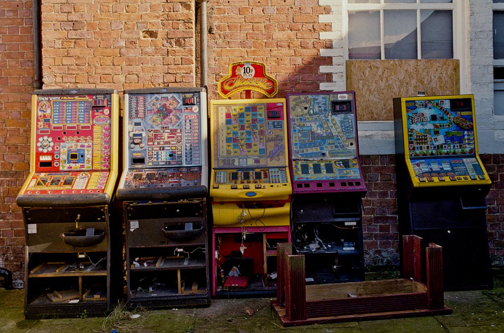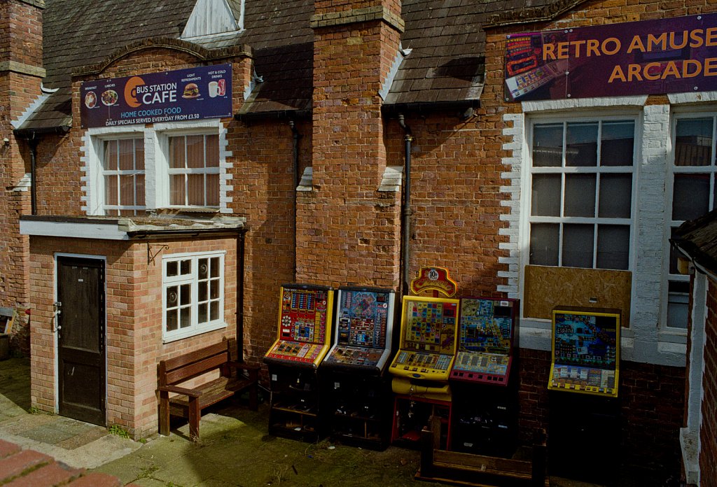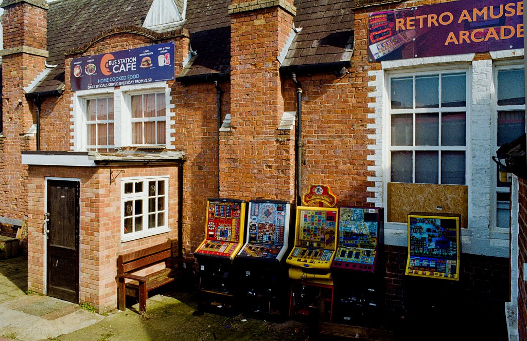 On the fruit machines at the Bus Station Cafe, King's Lynn, Norfolk,UK