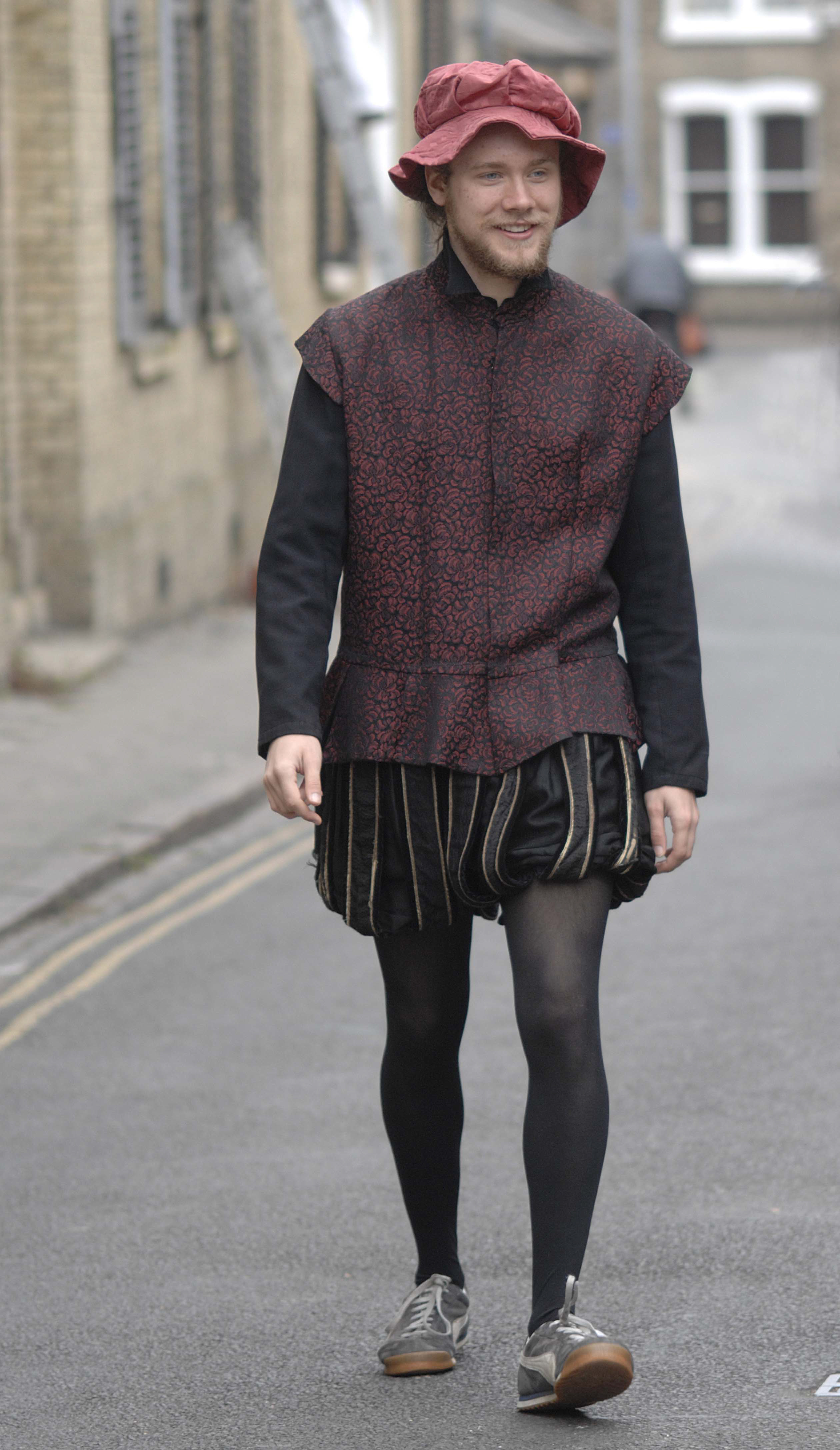 ©Si Barber. Moral rights asserted.   Pic by Si Barber - 07739 472 922 Cambridge student and actor Thomas Yarrow who is due to play Shylock in Shakespeare's Merchant of Venice visiting the Cambridge Synagogue to study Jewish culture with Nathan Jaffay. Pic shows modern and medieval Jewish clothing -nb In Shakespeare's time Jews were required by law to wear a red cap. Ordered by Jo Ruck 040507