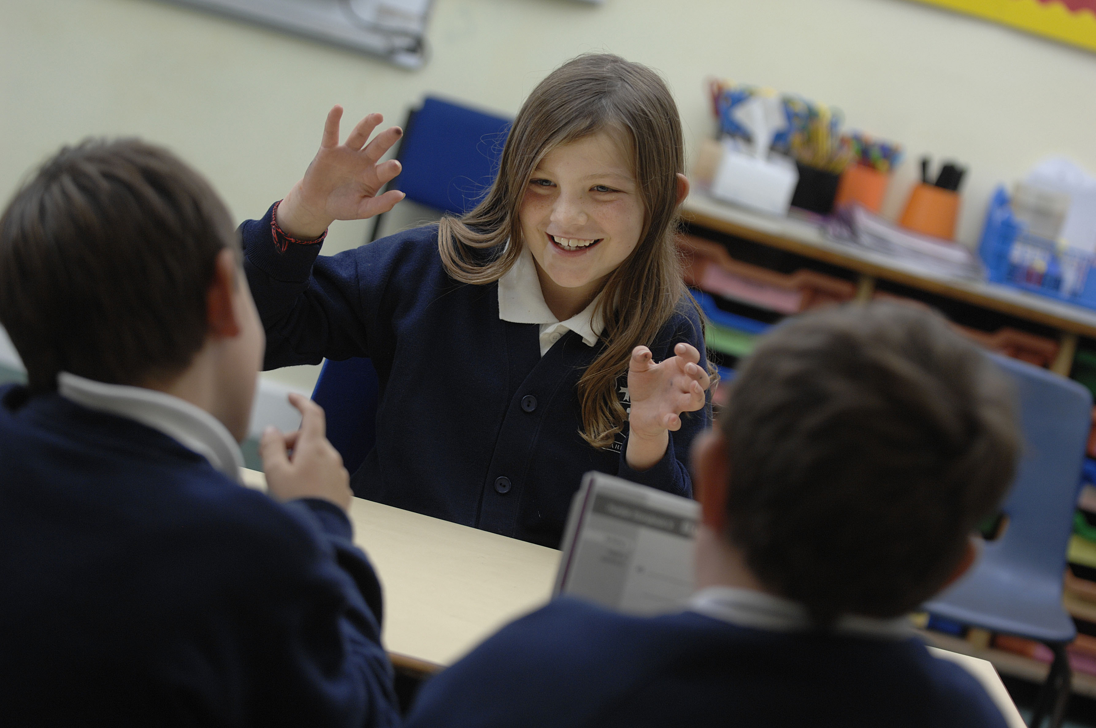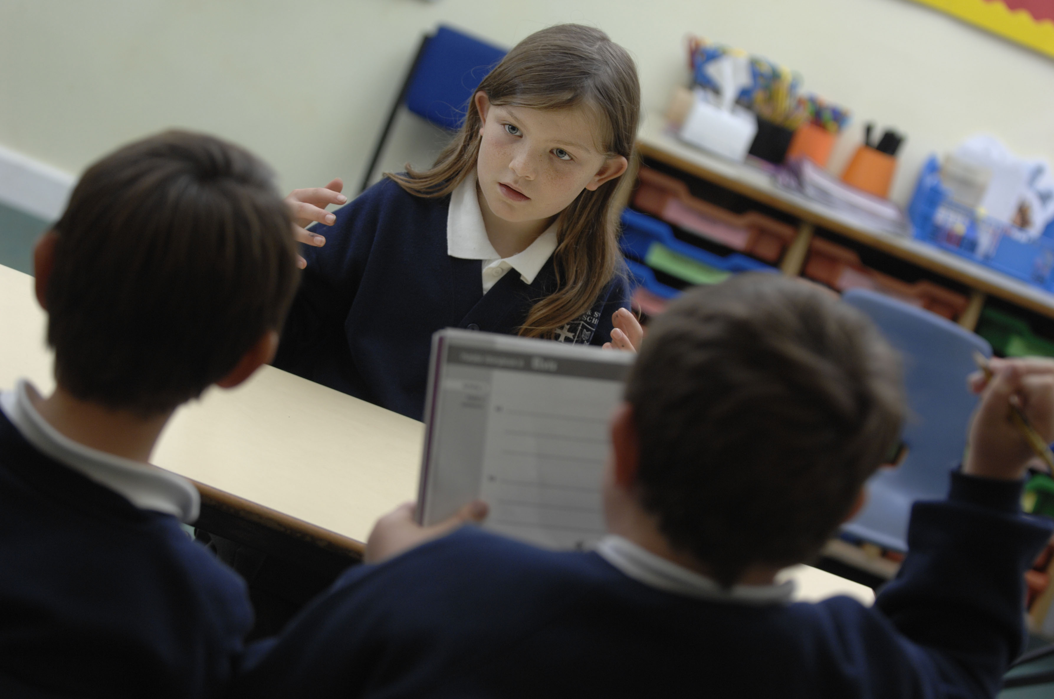 PHOTOGRAPHER - Si Barber 07739 472 922 COMMISSIONED 300908 -CHARLOTTE MAGUIRE Children of St Peter and St Paul primary school, Carbrooke,Norfolk interviewing and testing their classmates as they take over the school for a day and appoint their own teachers. Pic shows Lauren explaining the school rules to new teachers.