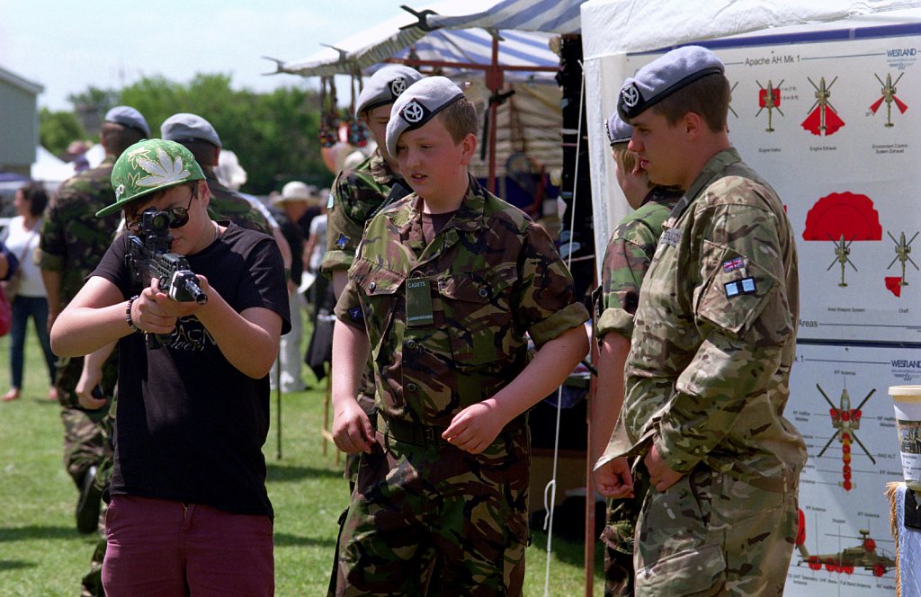 ? Si Barber 07739 472 922 A teenage boy trying out a gun at an army experience day.