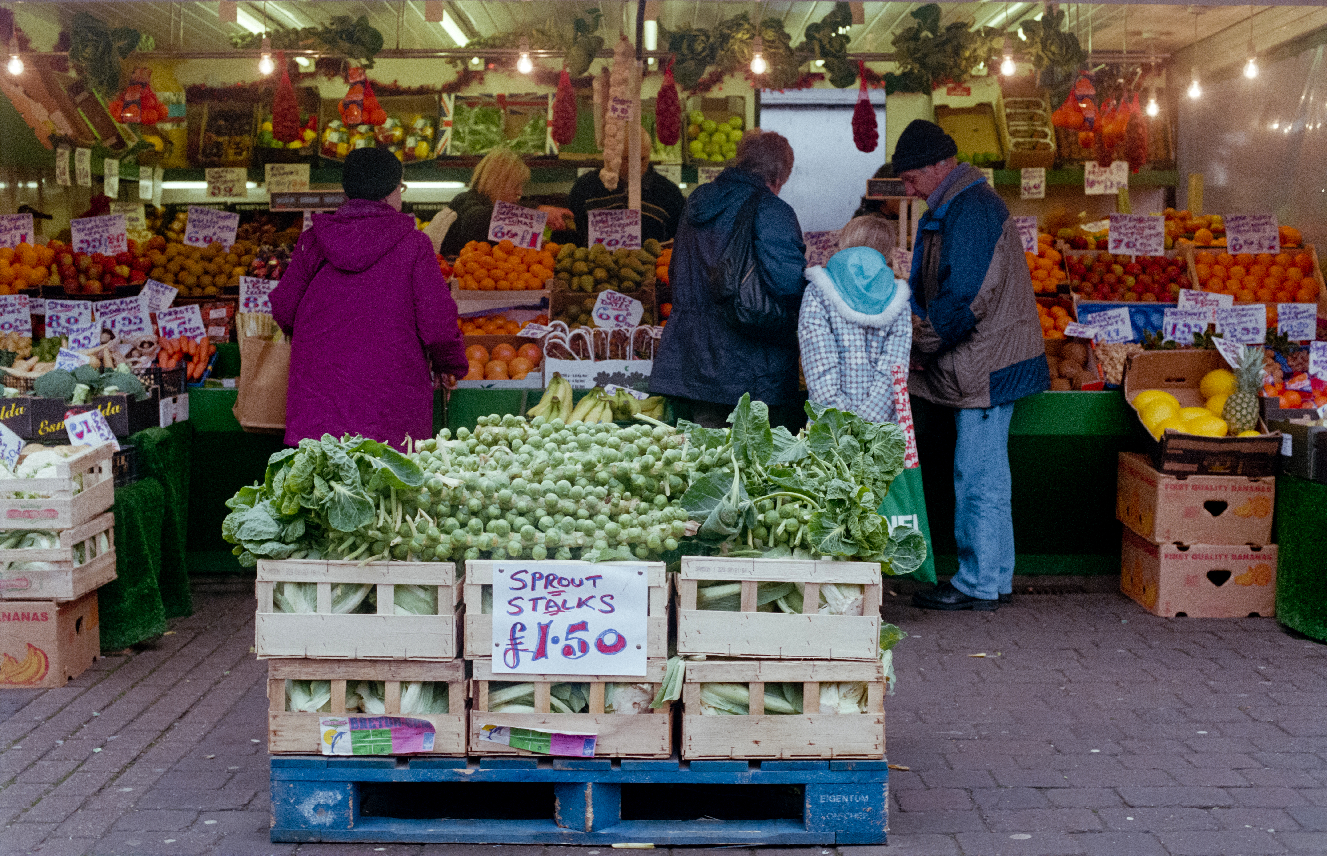Fruit and vegetables on sale at a shop in Swaffham,Norfolk,UK
