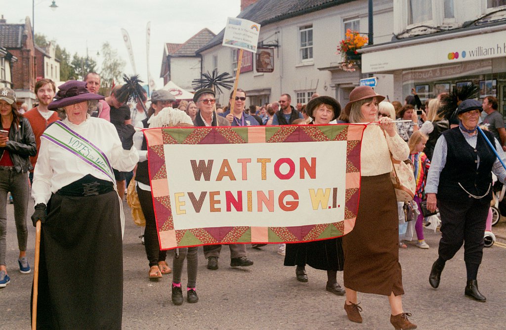 Watton Women’s Institute celebrating 100 years of women’s suffrage at the town’s annual carnival.