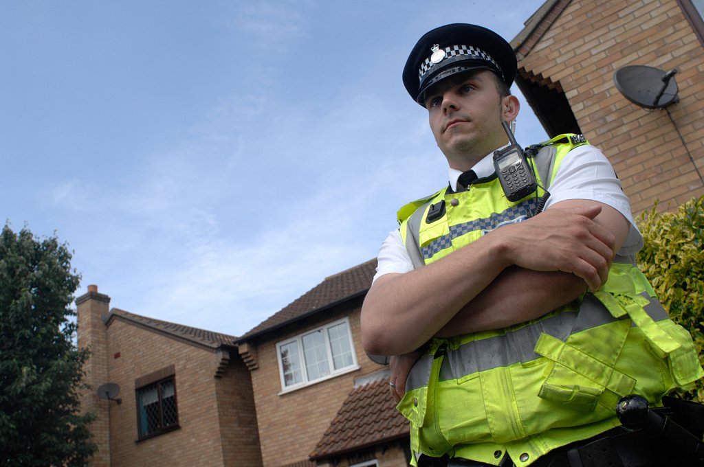 Mandatory Credit: ? Si Barber/07739 472 922 Police officer waiting outside a crime scene