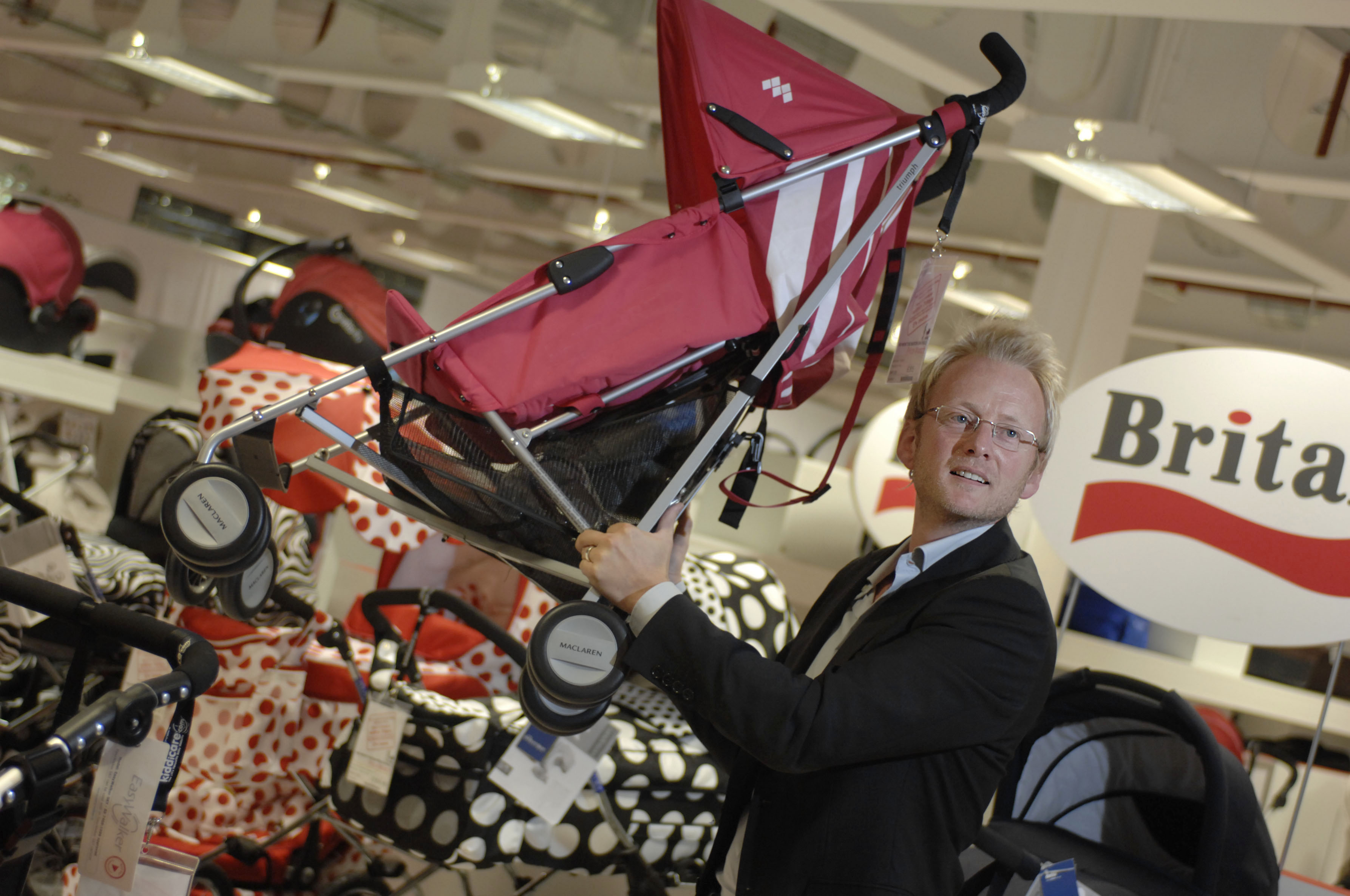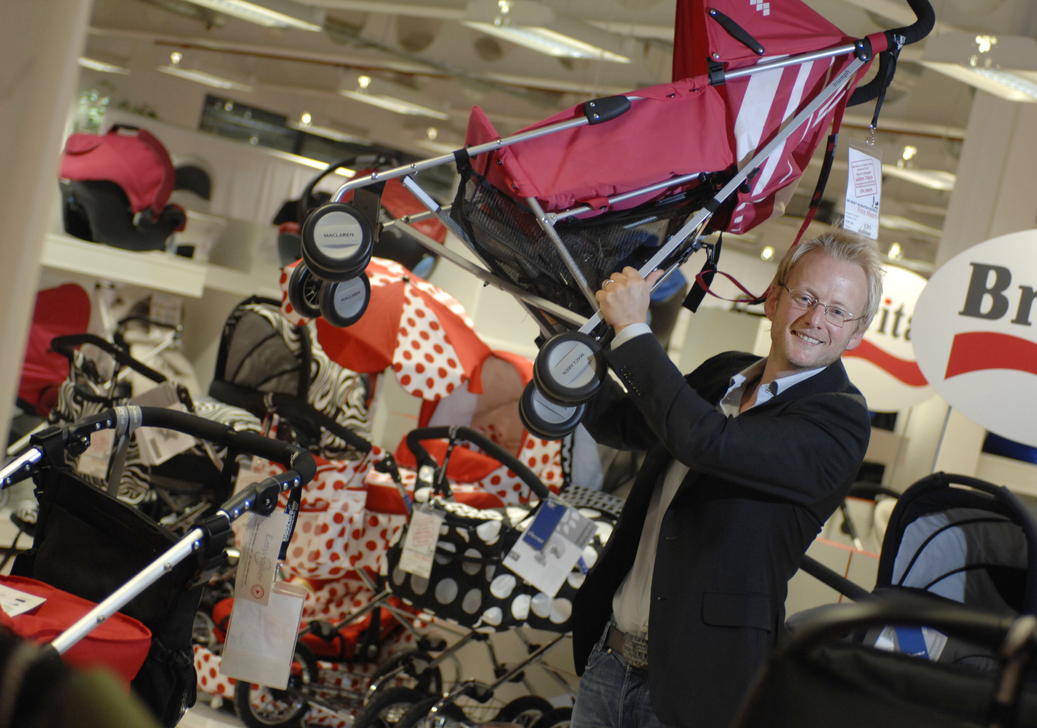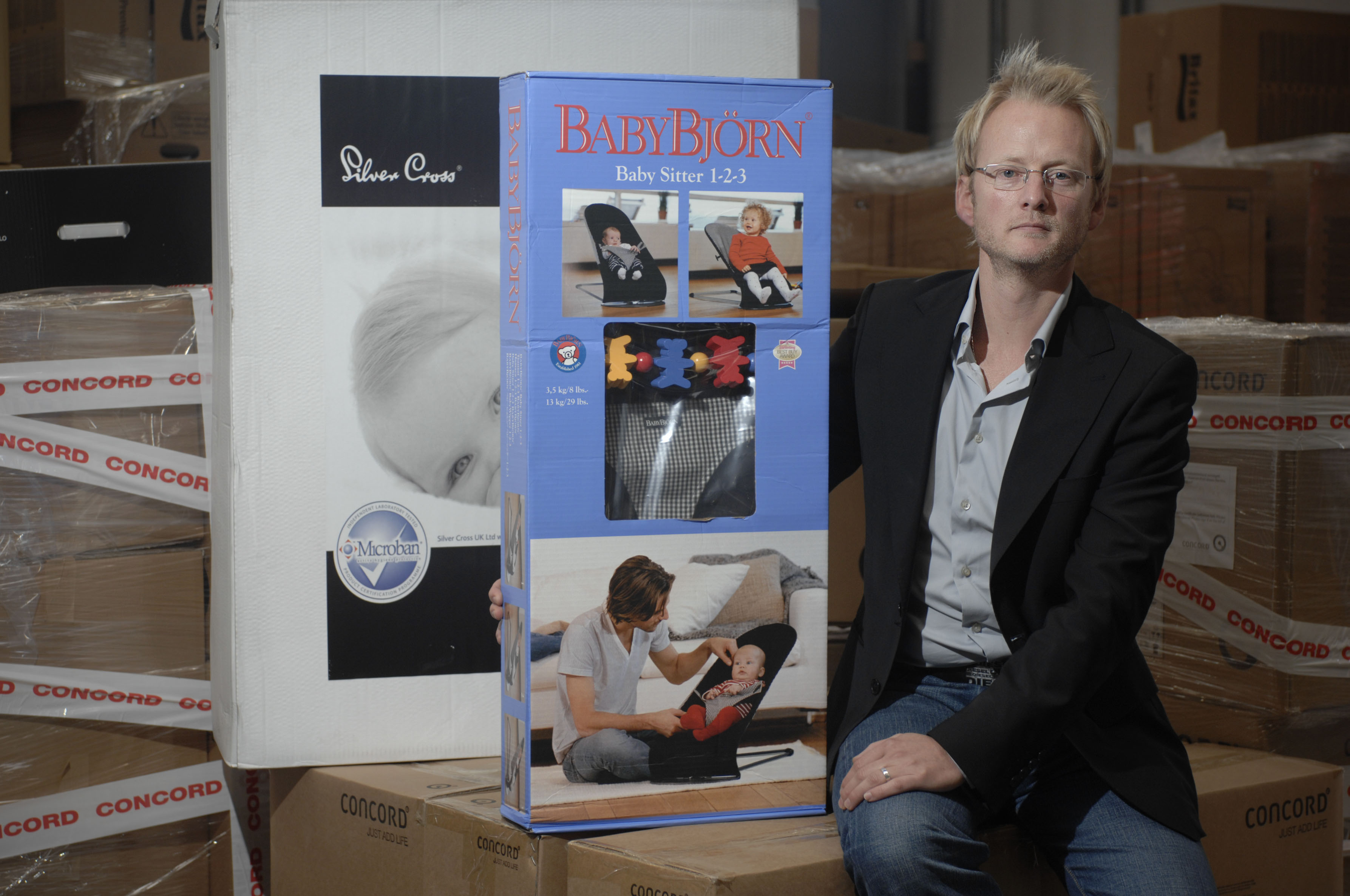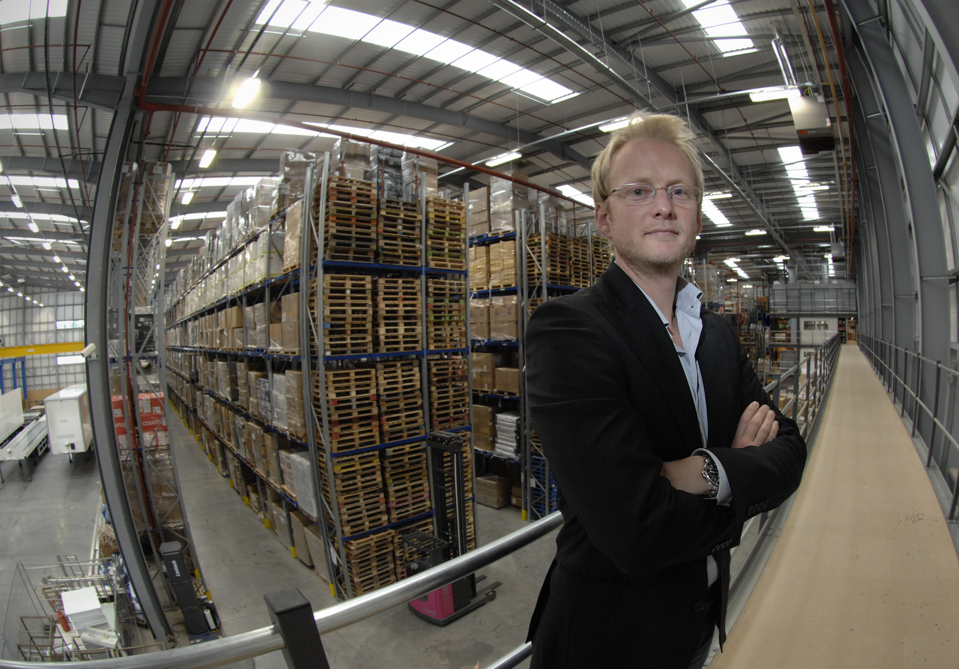 Scott Weavers-Wright, partner in Kiddicare, at the company's warehouse in Peterborough, Cambs. Ordered by Katie Carnie.