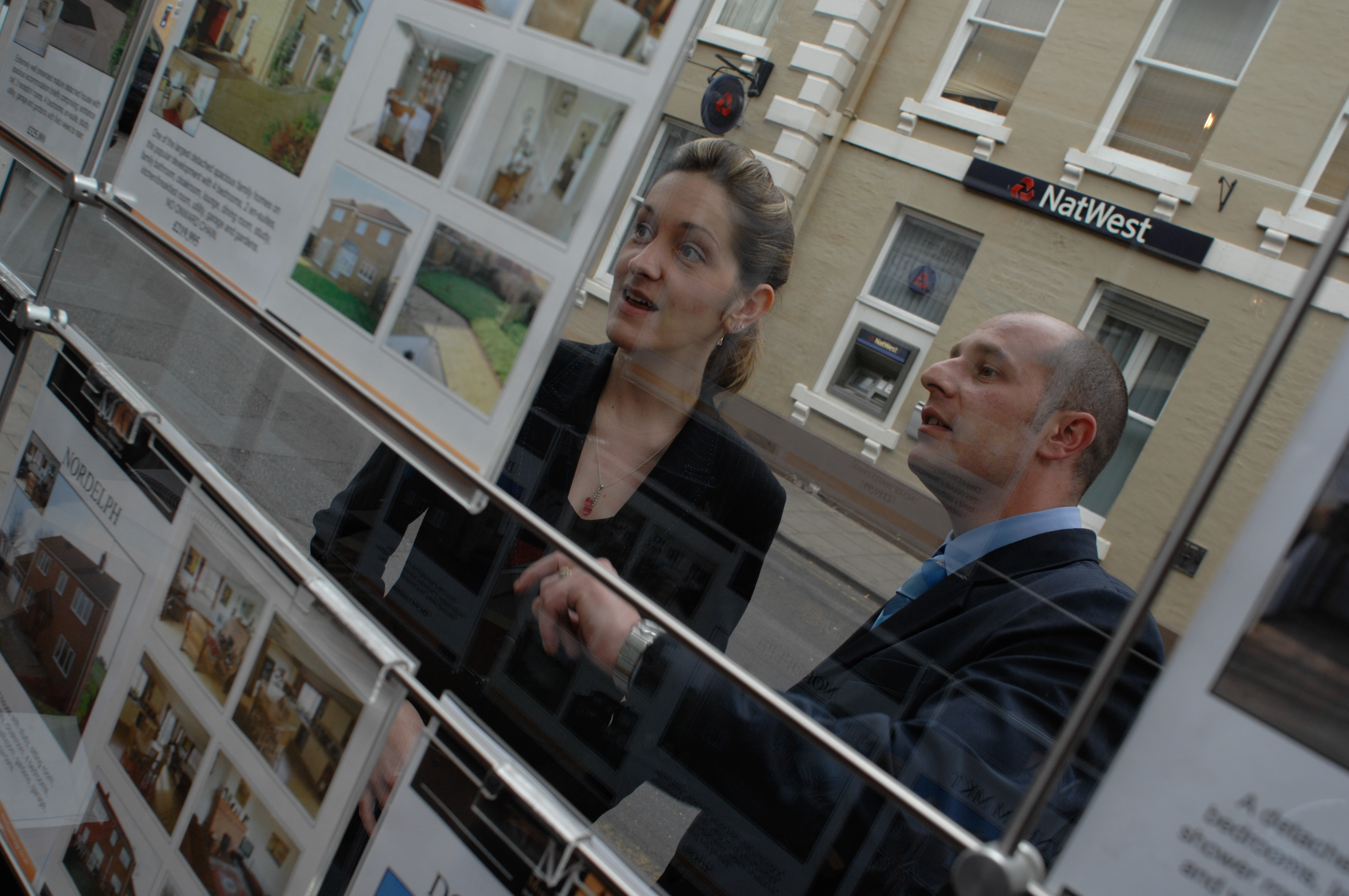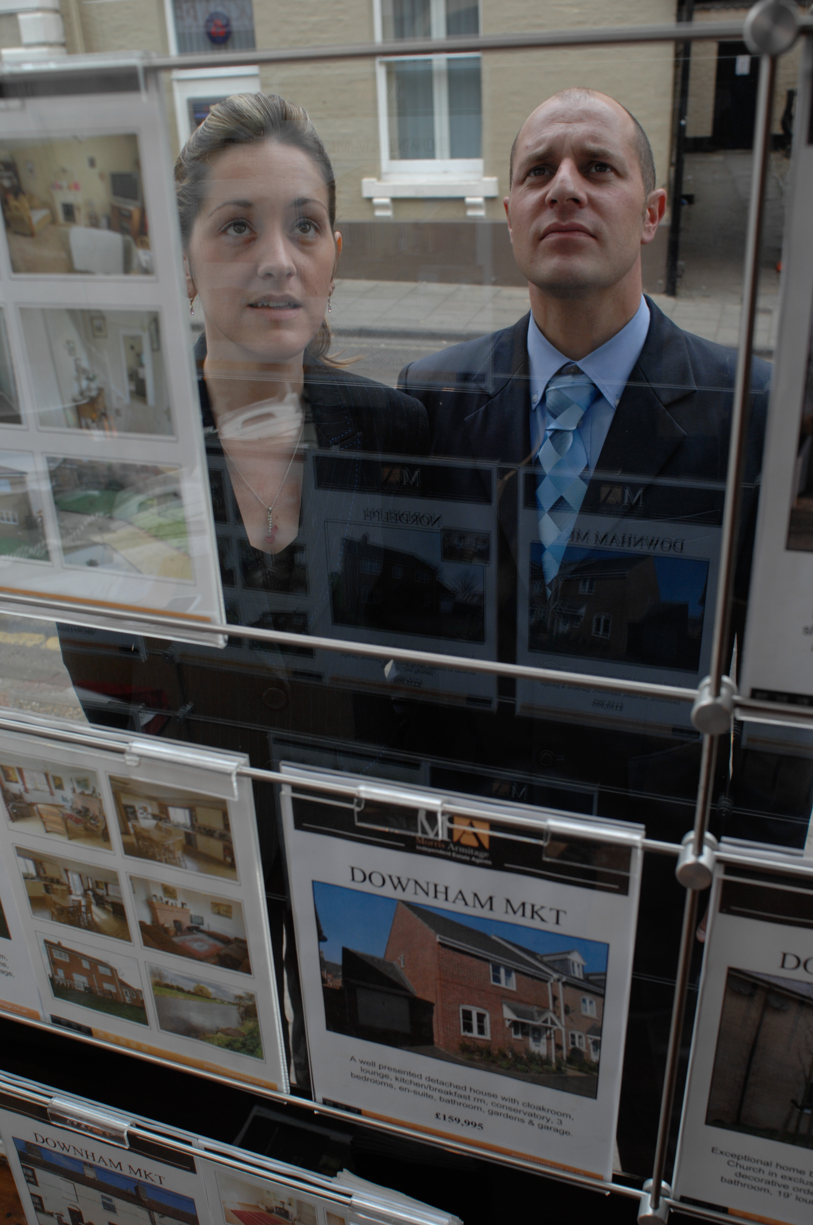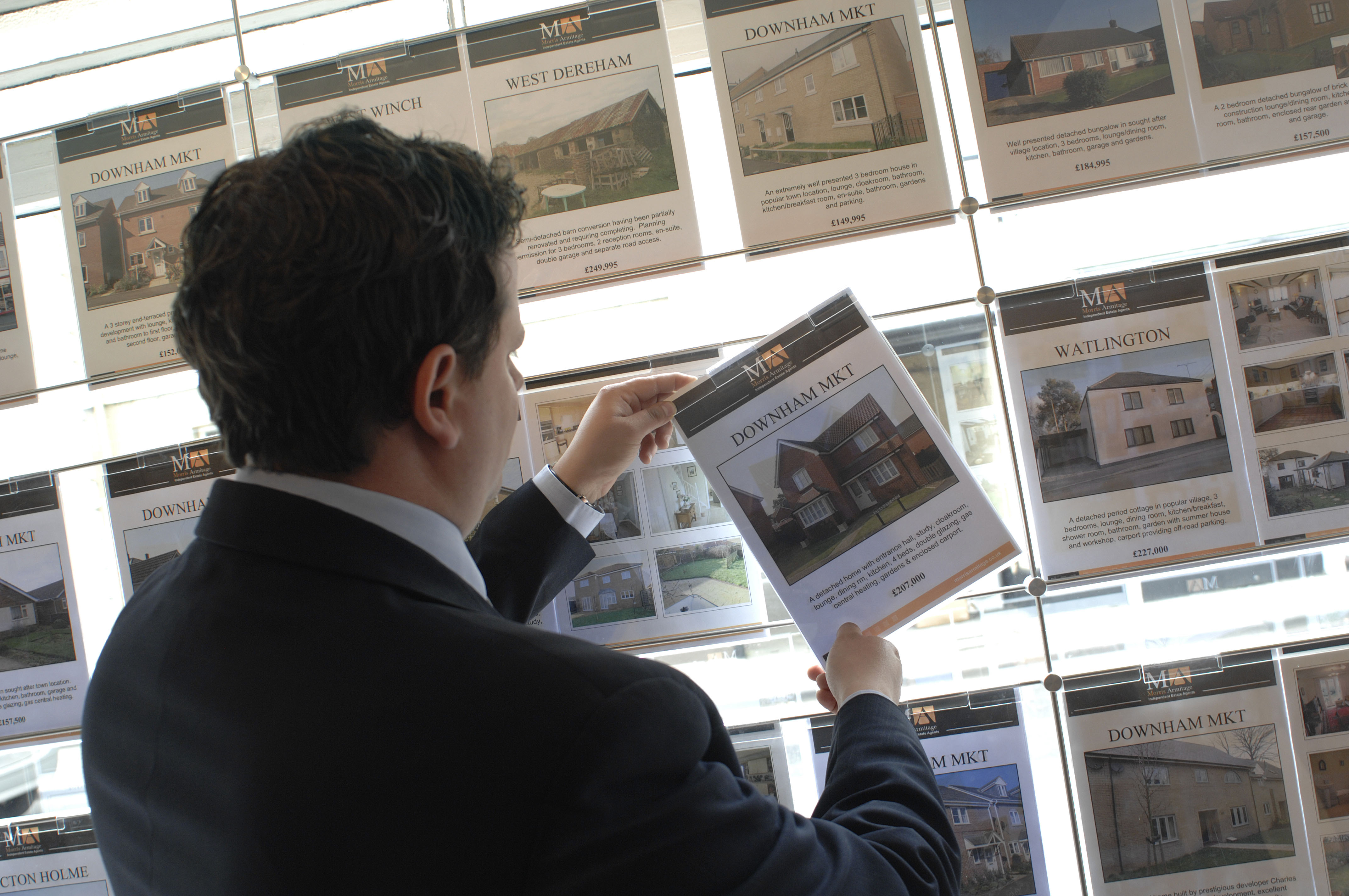 Paul Smith of Millsops estate agents, Kings Lynn, Norfolk adding new properties for sale in his shop window